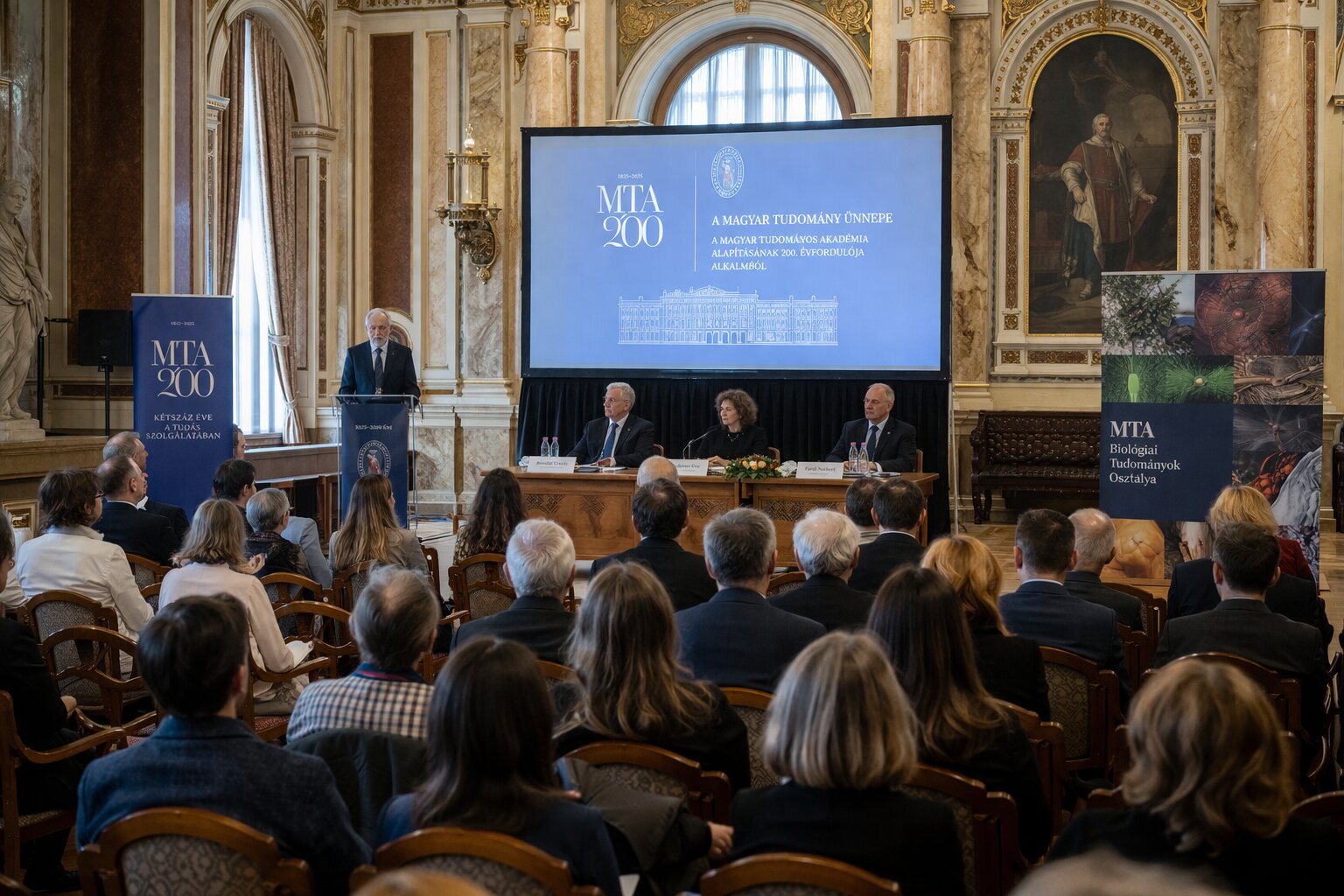Közleményük szerint a szerdai nyitórendezvényen tartott tudományos konferencián neves hazai és külföldi szaktekintélyek adtak elő. Sabeeha Merchant, a Kaliforniai Egyetem (Berkeley) professzora az algák fotoszintetikus anyagcseréjéről, Buzsáki György agykutató, biológus (New York-i Egyetem) az emléknyomok rögzüléséről, Kondorosi Éva (HUN-REN Szegedi Biológiai Kutatóközpont) pedig a növénytudomány fenntarthatósági szerepéről tartott referátumot. Pardi Norbert biokémikus, a Pennsylvaniai Egyetem professzora az mRNS-vakcinák legújabb fejlesztéseit ismertette, míg a tanácskozást Szathmáry Eörs evolúcióbiológus (Eötvös Loránd Tudományegyetem; HUN-REN Ökológiai Kutatóközpont Evolúciótudományi Intézet) előadása zárta.